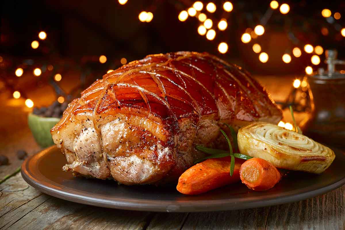 Gaļu (šķiņķis, pleca vai muguras gabals) ieberž ar sāli, pipariem, liek ar ādas pusi uz cepešpannas, pielej ūdeni tā, lai āda būtu segta, un cepeškrāsnī cep, līdz āda mīksta un ūdens gandrīz iztvaikojis. |