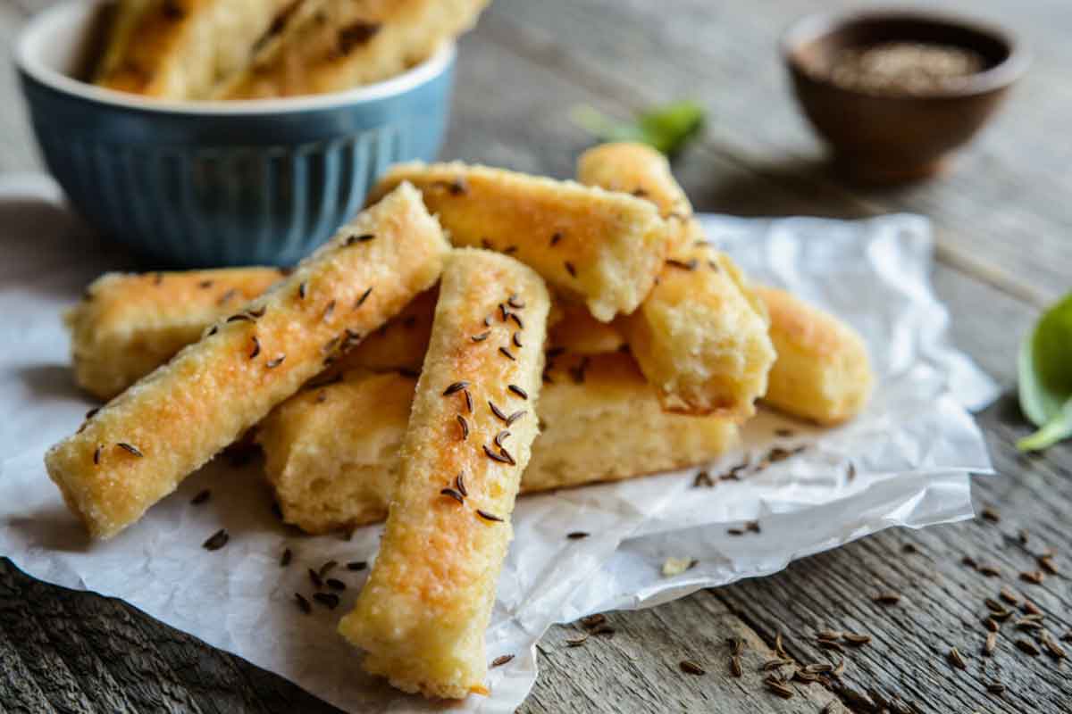 Ķimeņu nūjiņas tiek gatavotas tāpat kā sāļās, tikai sāls vietā tās apkaisa ar ķimenēm. Ķimeņu standziņas kļūs par lielisku gan pusdienu, gan svētku galda papildinājumu!