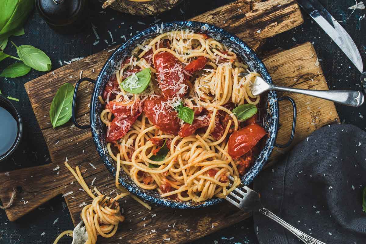 Pārkaisa ar bazilika lapiņām un rivēto sieru. Pasniedz karstu. |