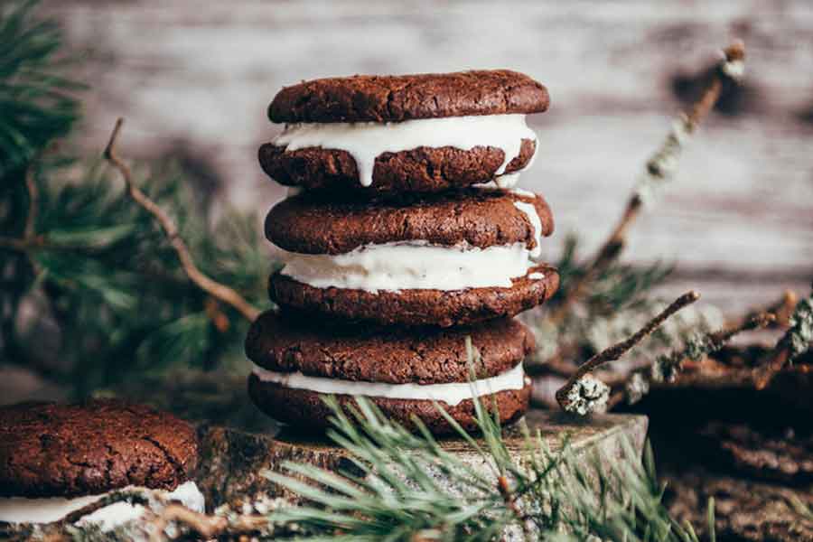Tiem, kuriem kārojas likt svētku galdā ko jaunu, piedāvājam recepti “Tumšās šokolādes cepumu un saldējuma sendviči”, kuru izgaršot kopā ar Mežpils porteri. Šis alus radīts viskija, ruma un burbona cienītājiem, jo vismaz 12 mēnešus turēts trīs dažādās ozolkoka mucās (Baltijas porteris 24 mēnešus noturēts JackDaniel’s Tennessee viskija mucās vai 12 mēnešus burbona mucās, bet Imperial Stout 12 mēnešus nogatavināts Jamaikas ruma mucās), iegūstot šiem dzērieniem raksturīgās garšas nianses. Laikā, kad ierastā kārtība ir mainīta un svētkus pavadīsim mierīgākā ritmā, kā ierasts, sadarbībā ar ēdienu un garšu entuziasti Māru Poli piedāvājam palutināt sevi un savus mīļos ar tumšās šokolādes cepumu un saldējuma sendviči.
